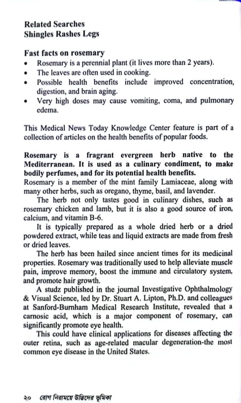 Salvia Rosemarinus সাধারণত রোজমেরী নামে পরিচিত, সুগন্ধি, সুঁচালোর মত পাতা, এবং স্বচ্ছ গোলাপী বেগুনী ফুলের একটি অংশ। ভূমধ্য সাগরীয় অঞ্চল, সেই সাথে পর্তুগাল ও ইউরোপ অঞ্চলে প্রচুর পরিমাণে জন্মে থাকে। প্রাচীন গ্রীক ও অ্যারাবিক চিকিৎসায় রোজমেরী ব্যববহারের ইতিহাস পাওয়া যায়। মিশর, তুরস্ক, ইরান, আজার বাইজান ও ইউরোপিয়া অঞ্চলের দেশগুলোতে...